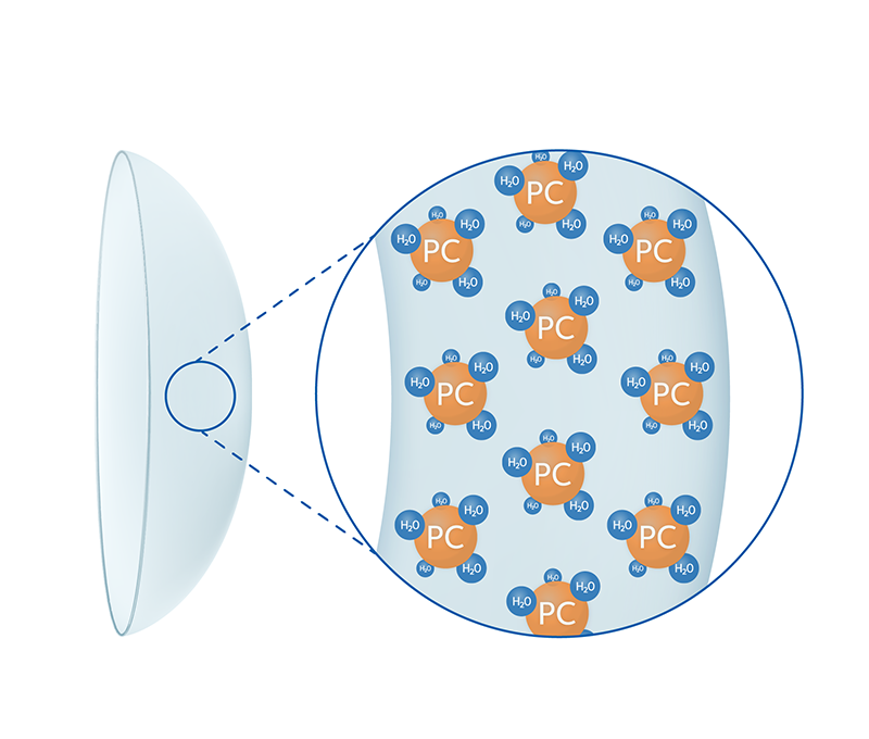 PC Technology™ פועלת באופן הבא: מולקולות פוספורילכולין (PC) אוהבות מים מטבען. הן מושכות את מולקולות המים שבדמעות שלכם וקושרות אותן על פני השטח של עדשות המגע. כך נוצר "מגן" עשוי מים סביב עדשות המגע, המסייע בשמירה על הניקיון והלחות שלהן, כך שהן מרגישות לחות ונוחות לכל אורך היום.